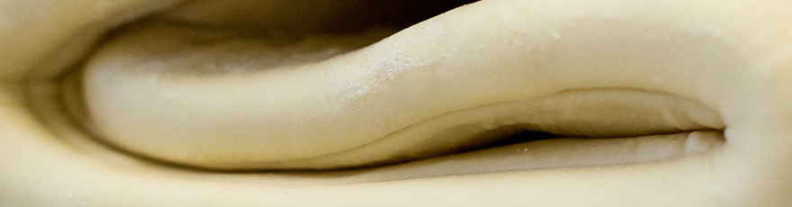 Quand vous utilisez la pâte, l’étaler, et la couper toujours net. Utilisez les chutes en les superposant, et étaler. Ne jamais mettre en boule la pâte !