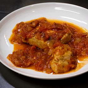 Poisson souvent délaissé, il possède une chair blanche ferme et fondante. Souvent associé à la tomate comme c’est le cas dans cette recette.